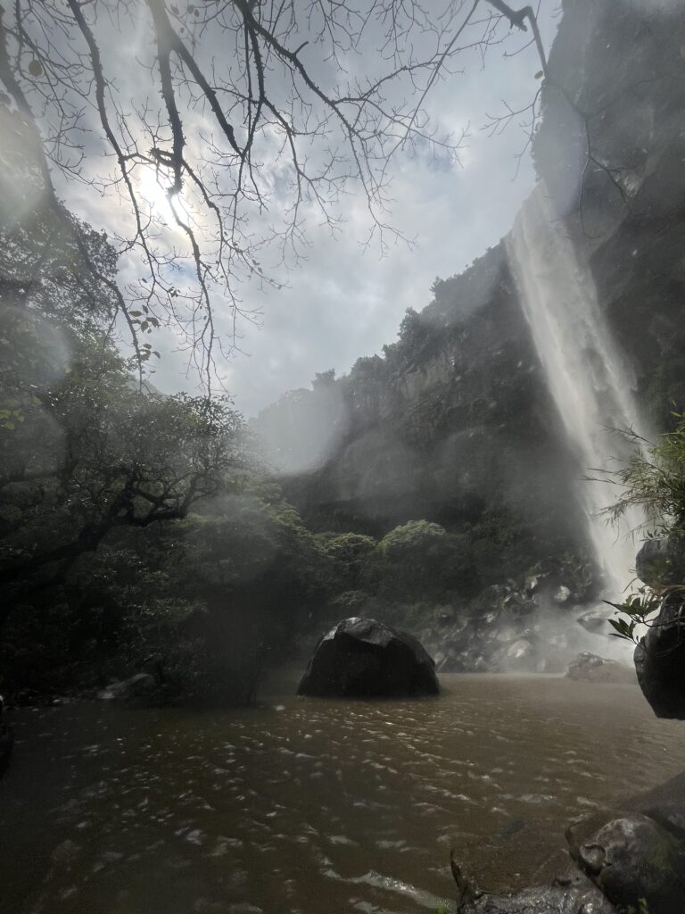 夜のうちに降った雨により、滝もかなりの水量でした。