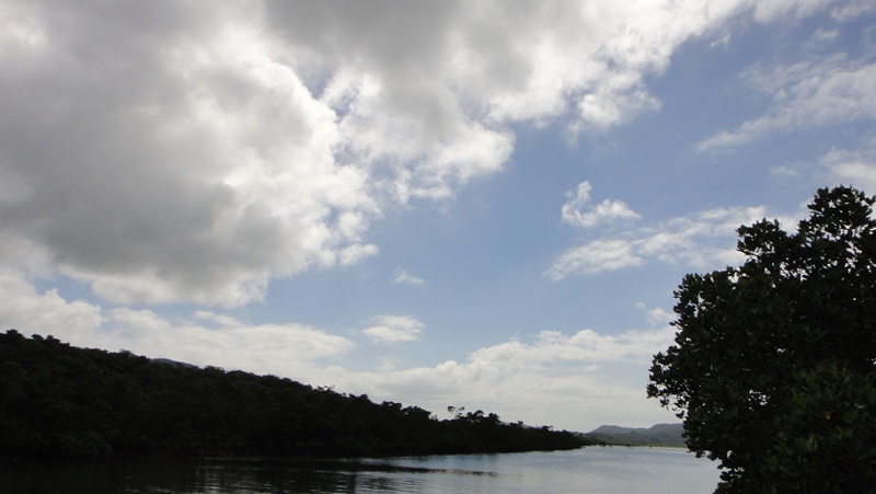 その帰り、船は港には行かずにマングローブの川へ避難!!
