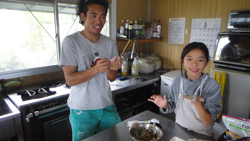 ♪チャラチャンチャンチャン・チャラチャンチャンチャン♪ ♪チャラチャンチャンチャンチャン・チャラララララ~~~~♪ こんにちは! では、本日は『ワンタン』を作りましょう☆ 今、オーナーの娘のはんなちゃんが遊びに来ています。 昨日から食材を獲りにいったり、ご飯を一緒に作ったりと女の子してます♪ 今日はアキさんと3人でワンタン作りにチャレンジ!!
