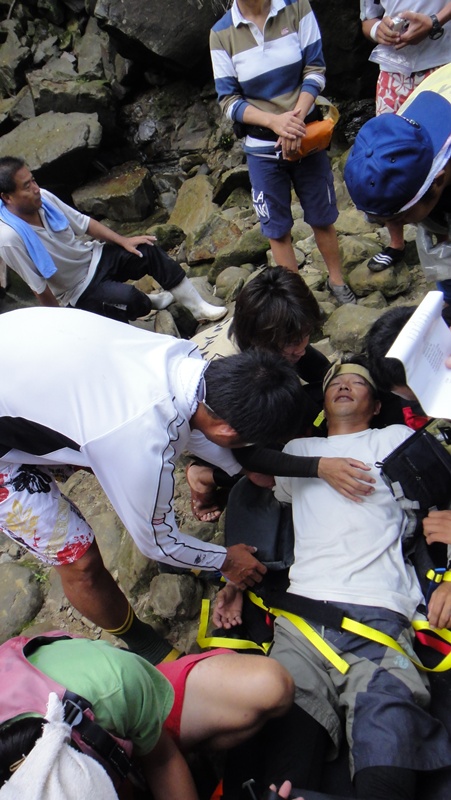 怪我人をタンカーに乗せたり、