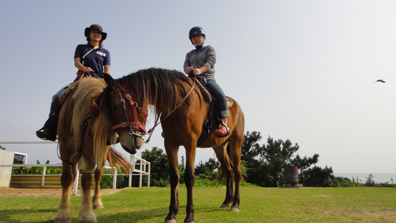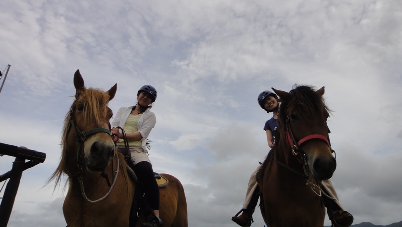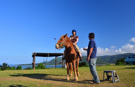 先日の石垣であったトライアスロンに参加して、筋肉痛の体にムチ打っての乗馬。