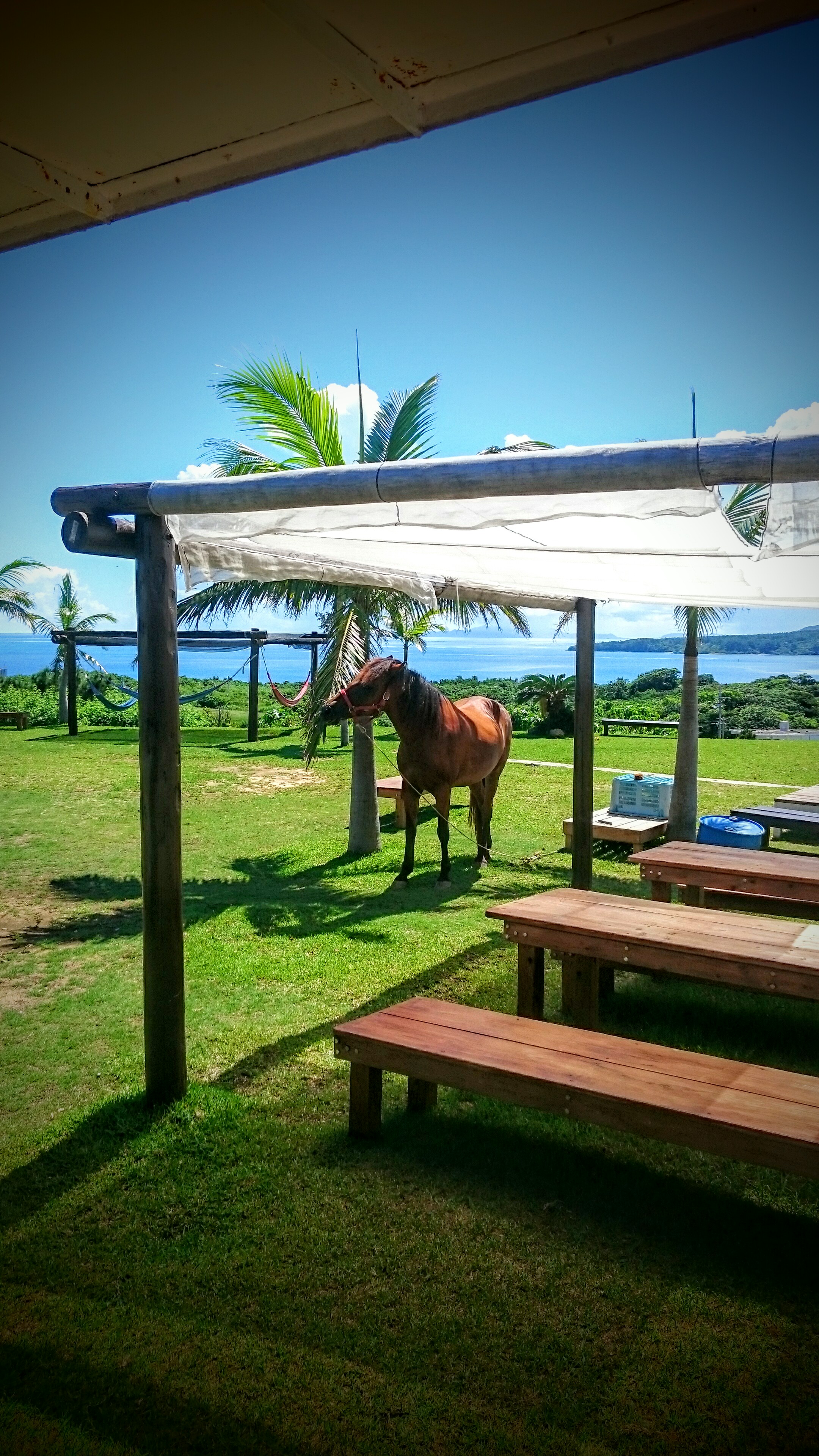 一応、薬を塗ってくれたらしいのですがこれは医者レベルでしょ!というわけで、休暇中のオーナーに報告してから西表島の家畜の先生の所へ!(本当は牛が専門なのですがモンスーンの馬達もお世話になってます)