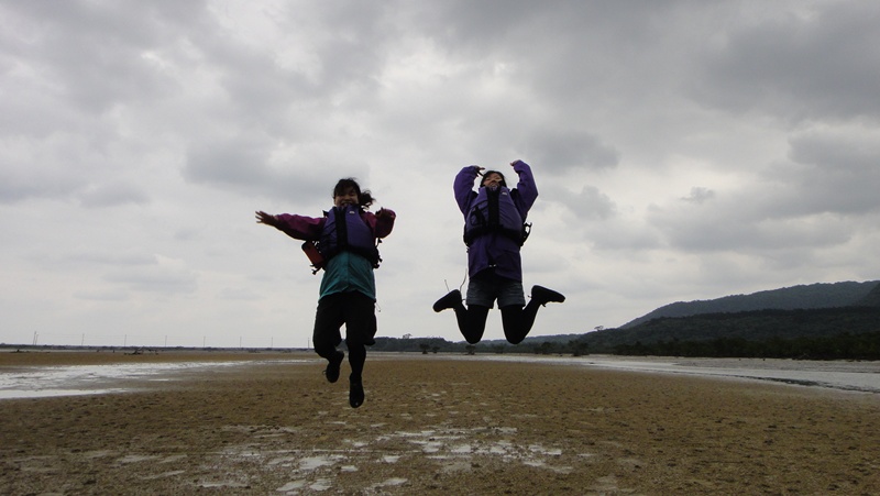 干潮に向かっていたので何度か浅瀬に乗り上げ、乗り上げたのを抜け出そうと漕ぐ米ちゃん。