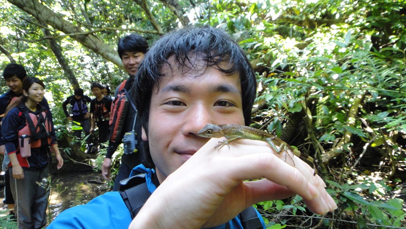 久しぶりにキノボリトカゲ発見で、後ろのガイドさん達もトカゲ待ち中です。