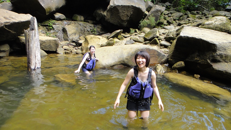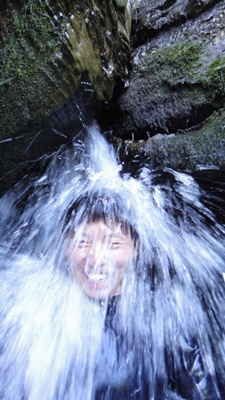 山登りもこんなにハードだとは思わなかったみたいですが、汗いっぱいかいての~滝つぼダイブ!