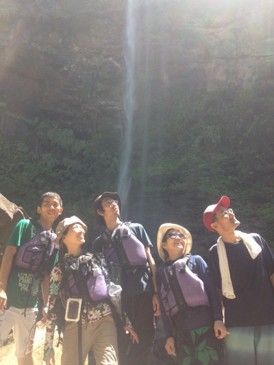 滝上ではあまりの気持ち良さに、みどりさん、水上ヨガ 画になるわ~♡