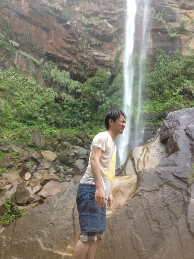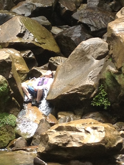 汗をかいた身体は、滝上の川の水でcool down ♪