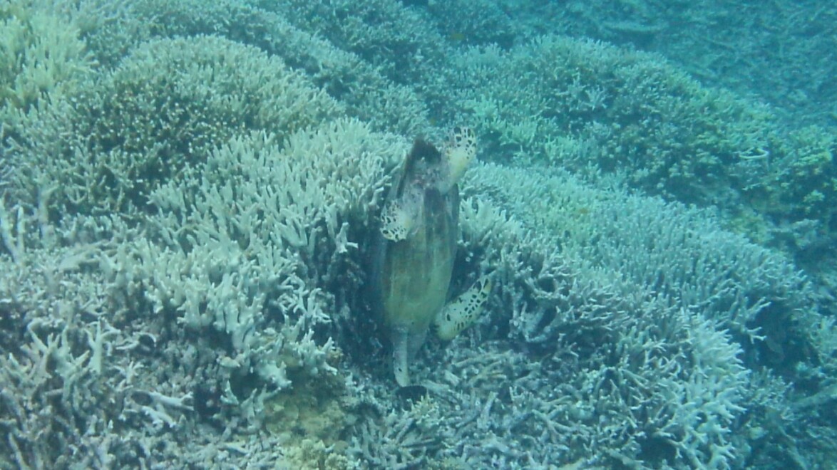 少し流れに逆らって泳いでいると、ウミガメちゃんがのんびり泳いでいました!