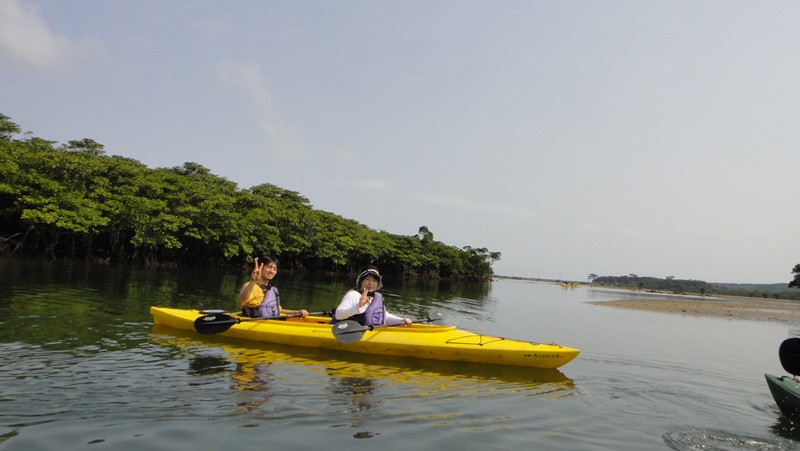 ちょっと早足で山を降りてみましたが、雨までは降りそうになく、 カヤックのんびり漕いで、今日は楽しかったな♪ って雰囲気を2人が出してきたけど、まだまだ終わりませんよ!!! 午後はシュノーケルが待ってます! ・・・・だけど、風が上がってしまって海に出れなかったので急遽洞窟へ・・・。 でも今日はちょっとお得なツアーになりましたね!! なのでまた海が穏やかなときにリベンジしに来てください♪ SHINO